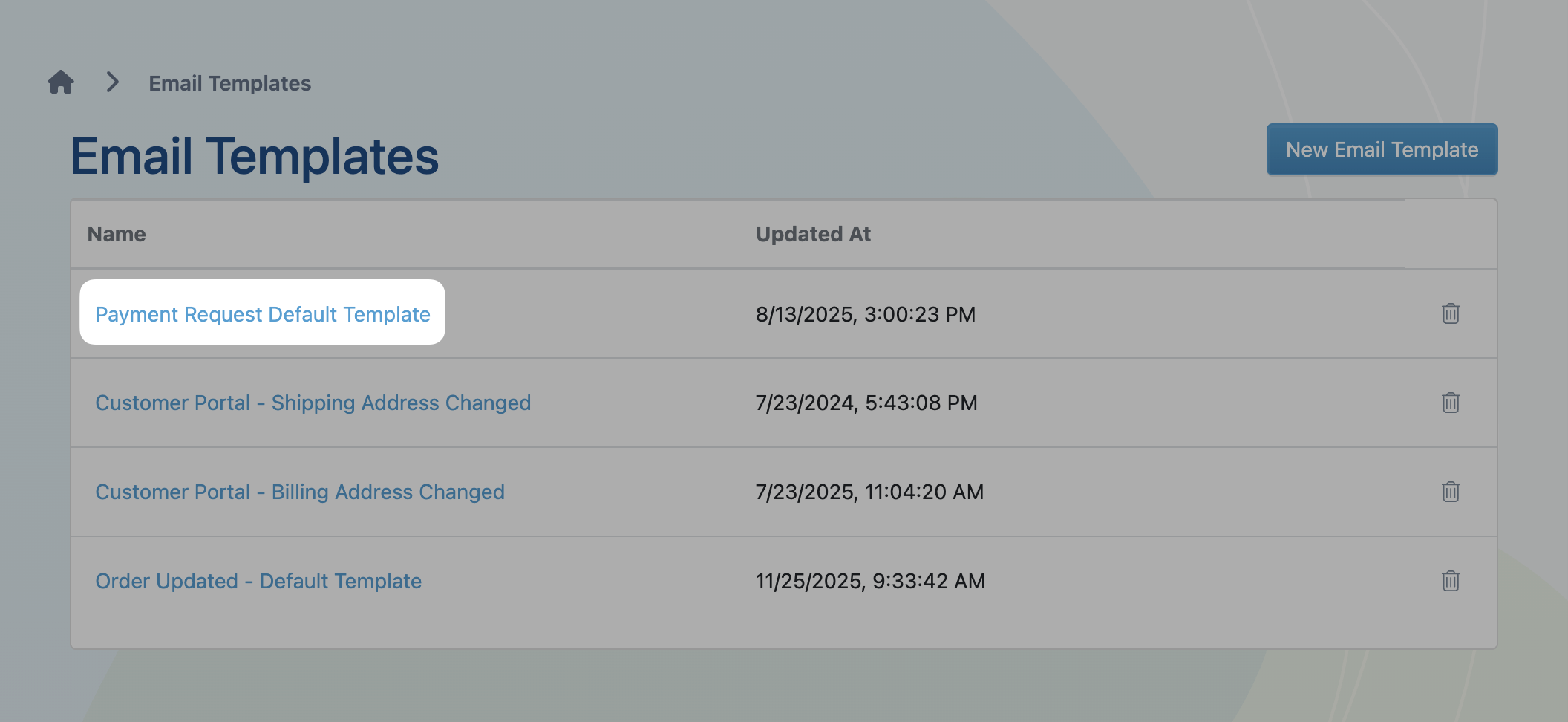 - Select Email Templates from the dropdown menu.