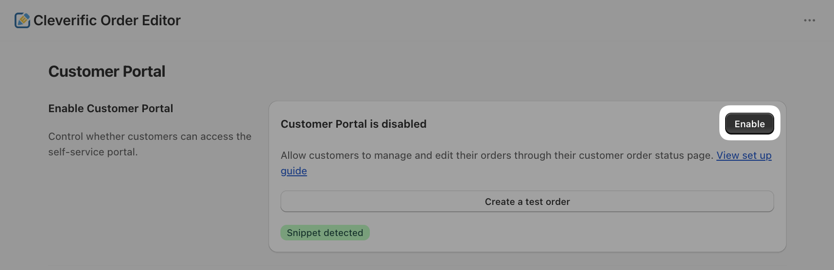 - Once you've tested your setup, return to your Customer Portal settings and click the Enable button.
