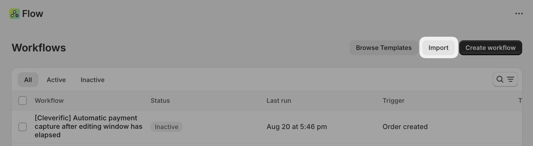 - Import the .flow file by clicking Import in your Flow dashboard.
