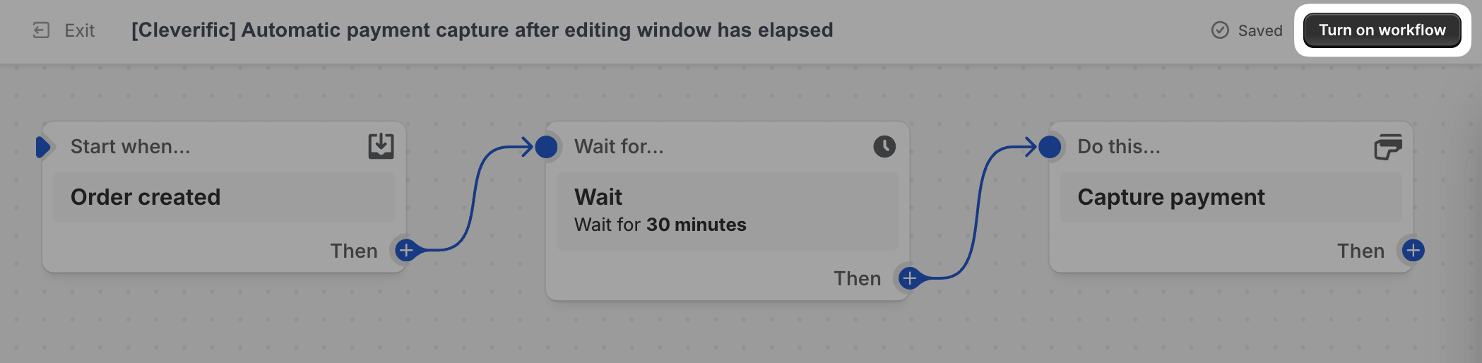 - Click Turn on workflow.
