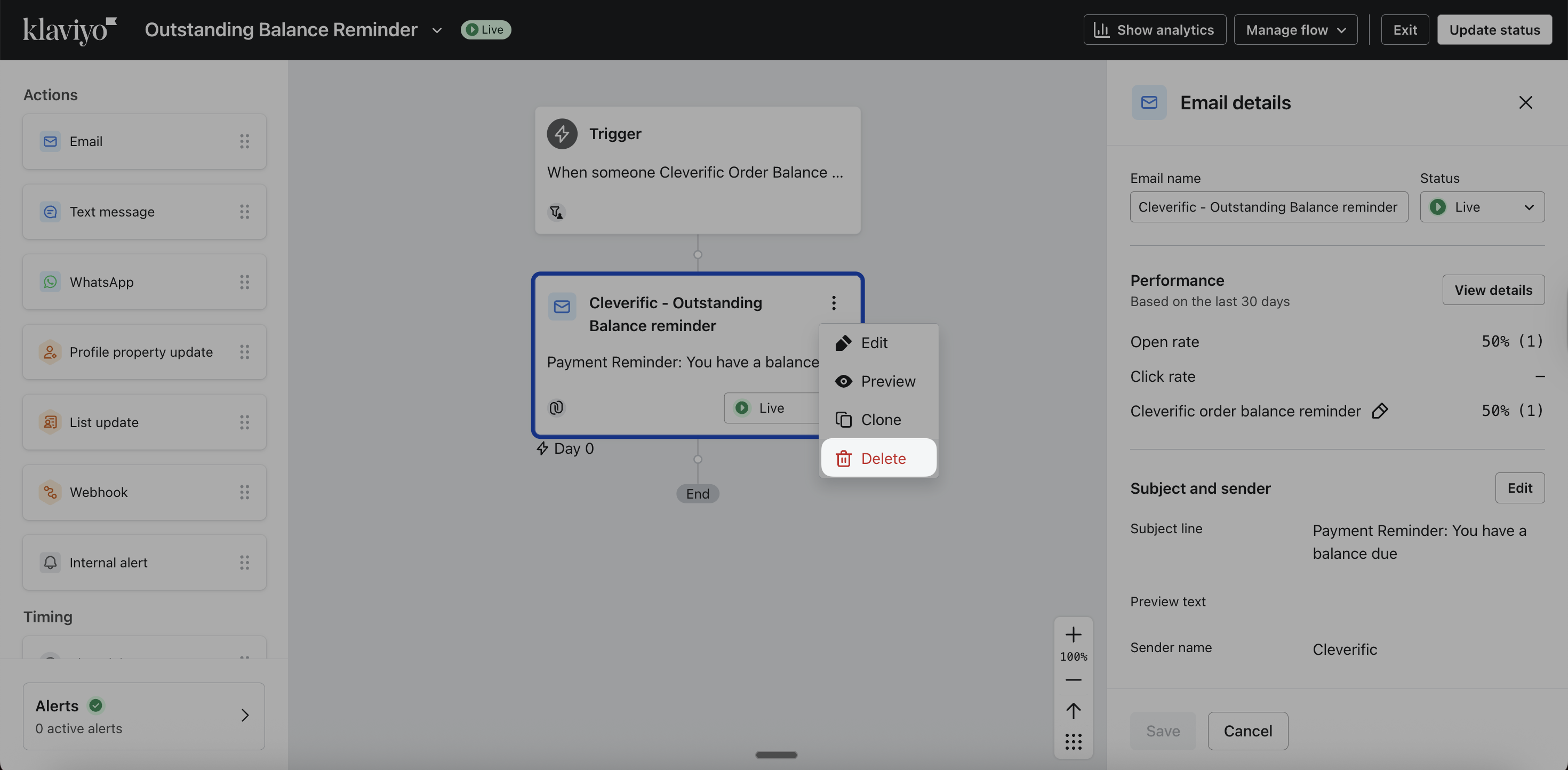 If you update the copy in a Klaviyo email template and don't see the changes in the email received after the flow runs, the flow may not have registered the template change. To fix this, you can remove and re-add the template within the flow. This article will show you how.