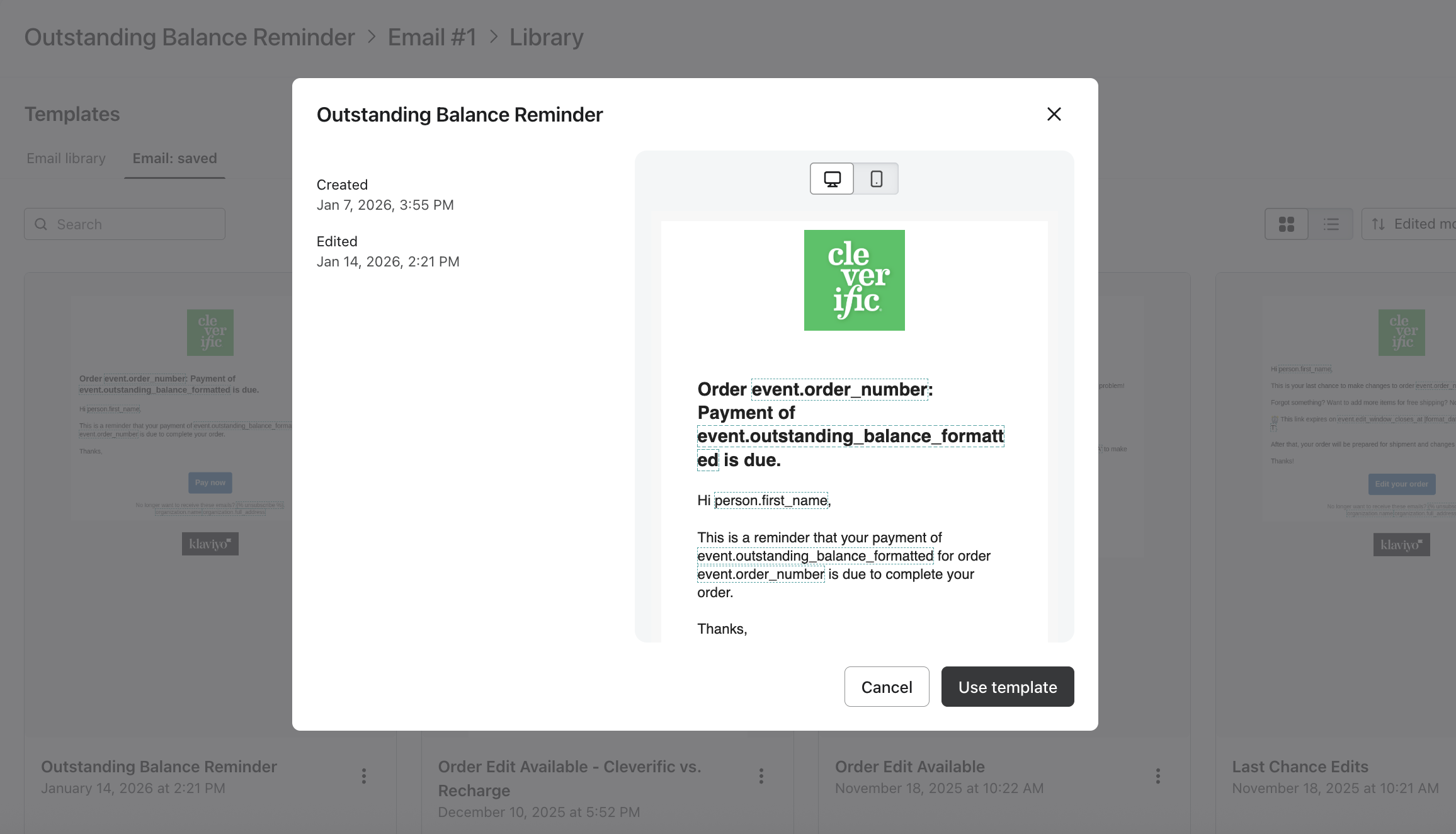 - Removing and re-adding the template forces Klaviyo to pull in the latest version of your template content.