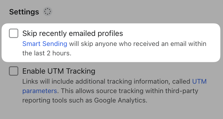 - Before resending the email, navigate to the Settings on the email action and eselect Skip recently emailed profiles to ensure the updated email reaches all intended recipients.