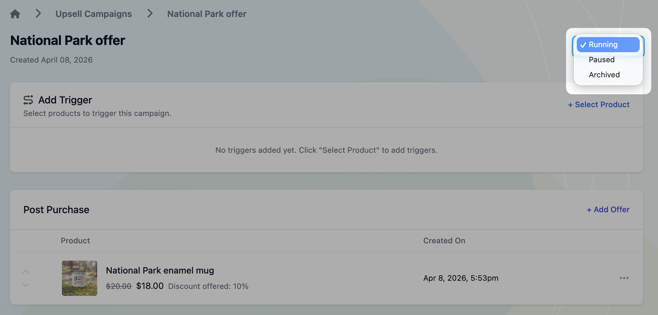 - When your offer is ready, change the campaign status from Paused to Running in the top right corner.