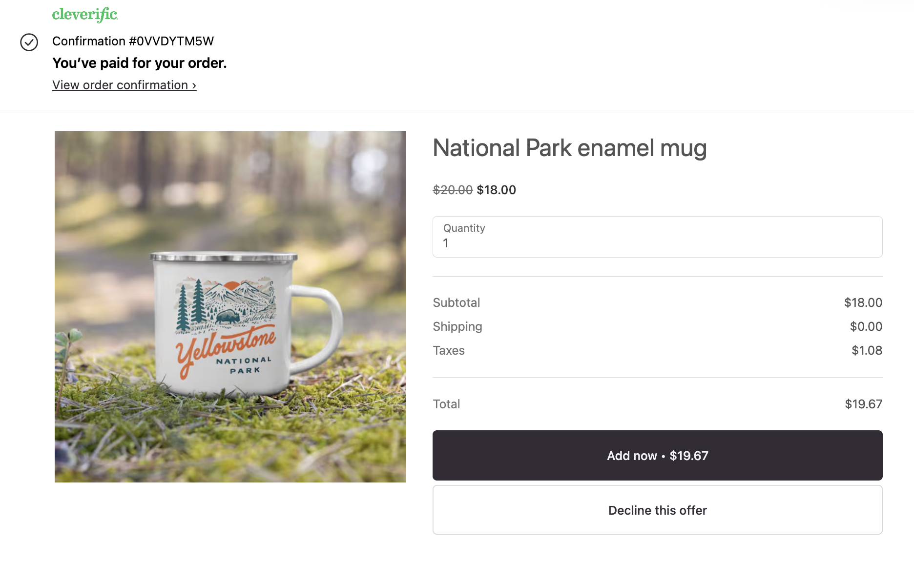 Post-purchase offers appear immediately after checkout, before the Thank you page. This is a powerful moment to offer customers relevant products while they're still in a buying mindset. This article will show you how to set this up with Cleverific.
