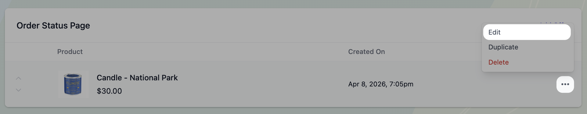 - Under the Order Status Page section, click + Add Offer and select the product you'd like to upsell.